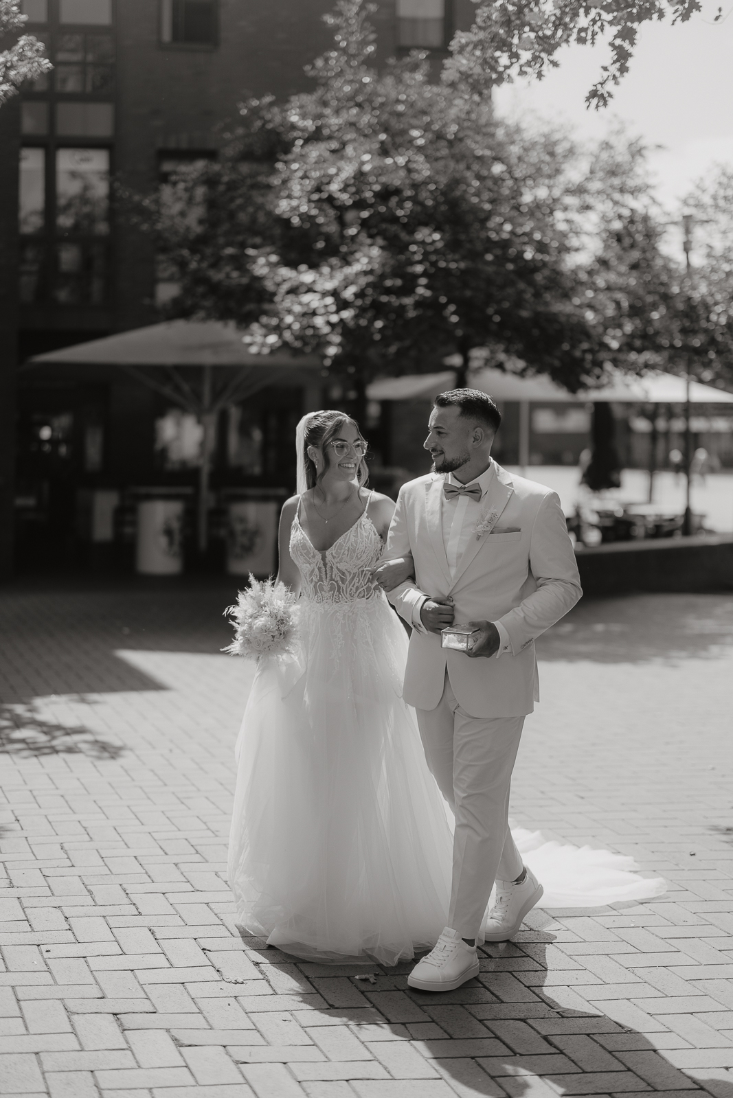 Bettina und Kevin haben sich eine urbane Stimmung für ihre Hochzeitsreportage gewünscht, also haben wir uns nach dem Getting Ready und der standesamtlichen Trauung auf den Weg nach Hannovers Innenstadt gemacht. Verbunden mit einem kleinen Spaziergang, konnten wir an verschiedenen Spots zauberhafte und authentische Bilder entstehen lassen. In der folgenden Galerie findet ihr einen kleinen Ausschnitt aus der gesamten Hochzeitsreportage der beiden.